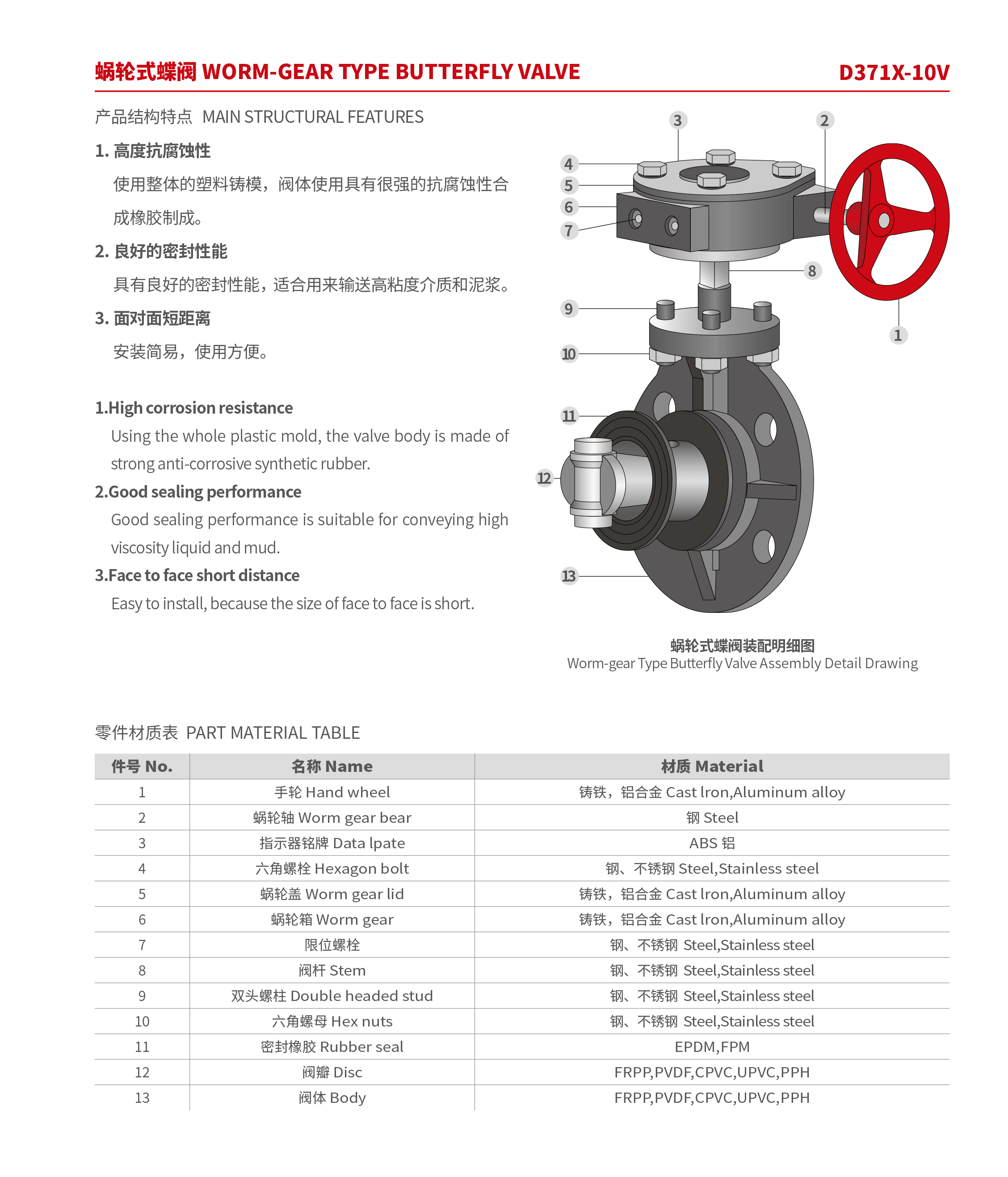 UPVC B款蝸輪蝶閥 D371X-10U